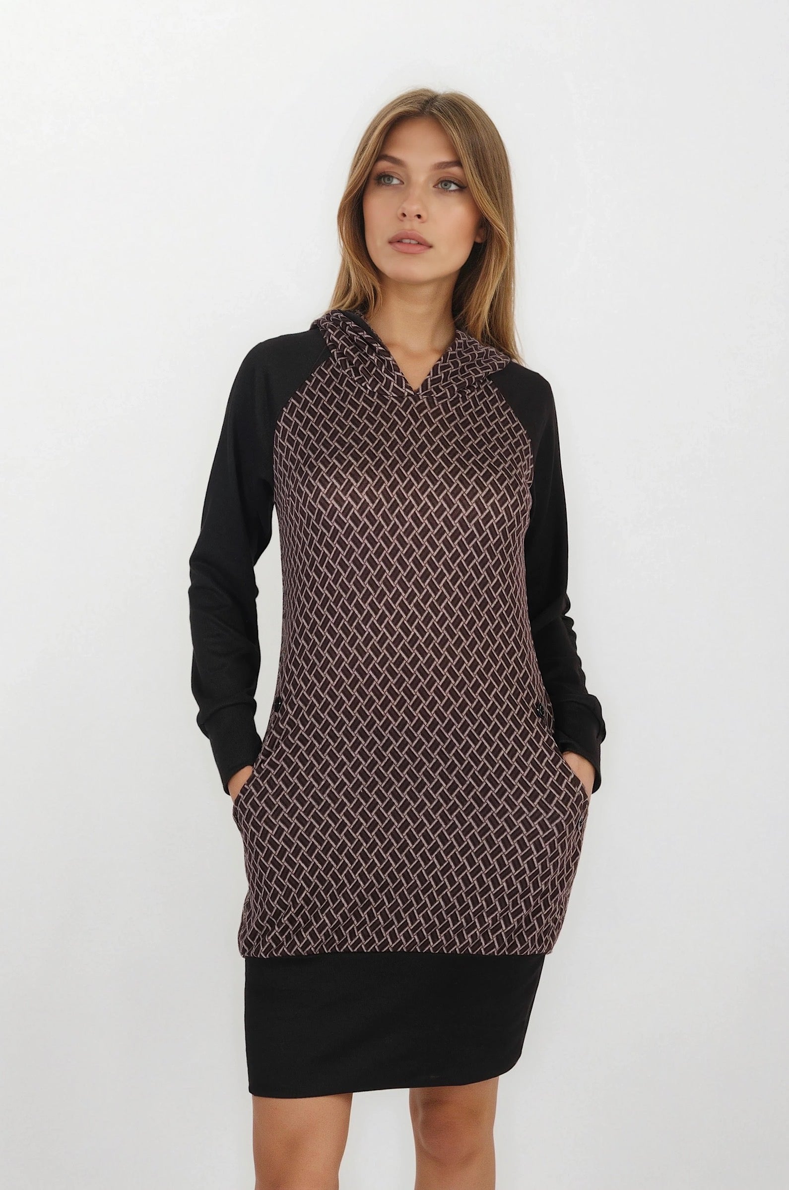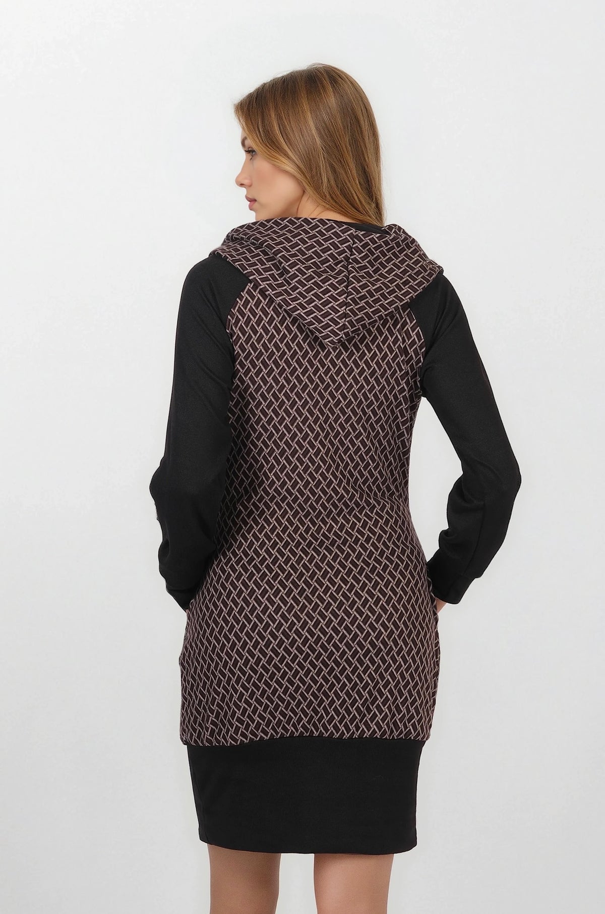 Découvrez la Robe Neline, une superbe robe à capuchon qui allie confort et style sans effort. Son motif géométrique élégant dans des teintes de brun foncé, beige et noir apportera une touche contemporaine à votre garde-robe. Idéale pour les journées où vous voulez être à la fois à l'aise et bien mise, elle est parfaite pour la femme moderne.