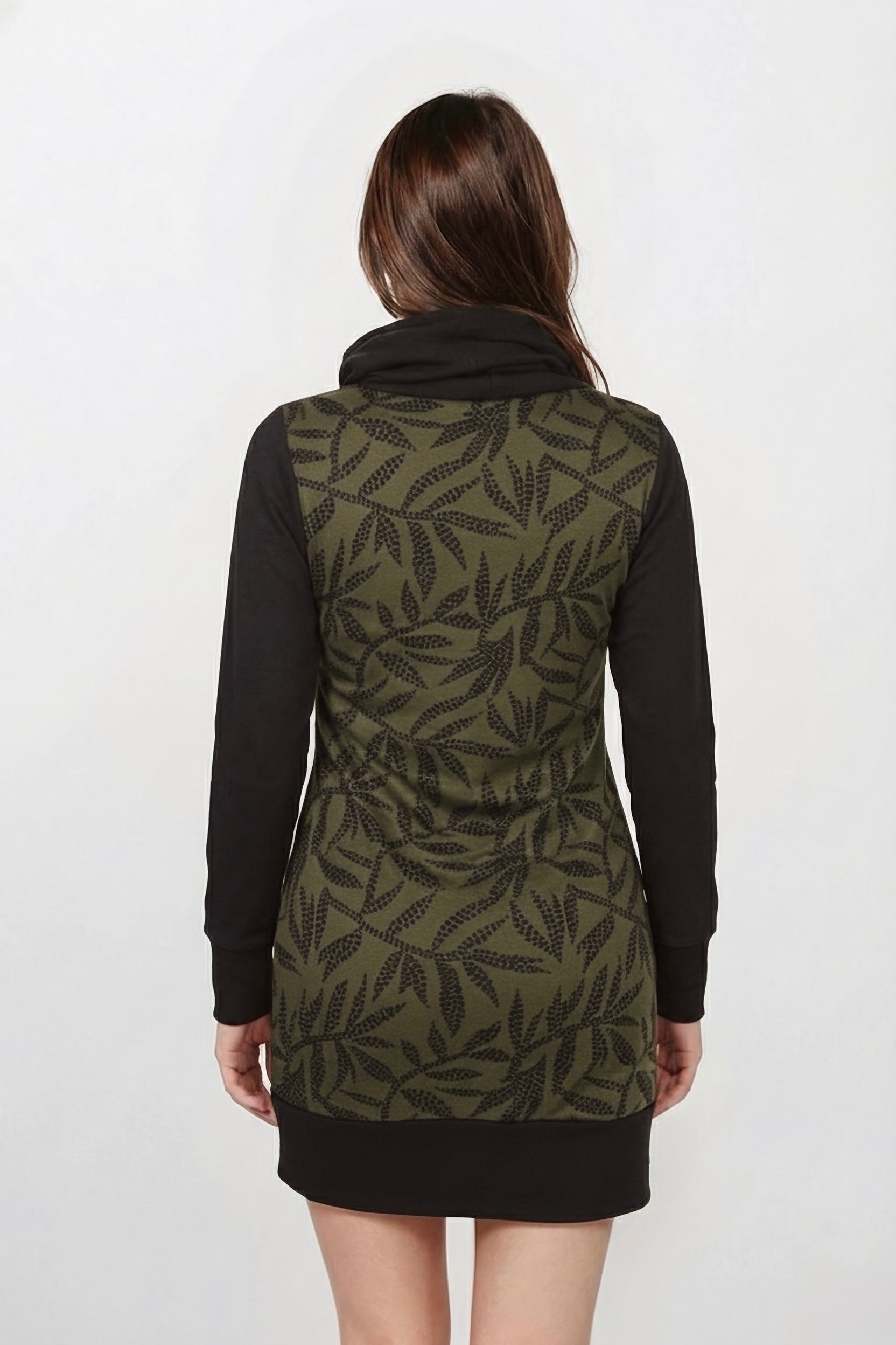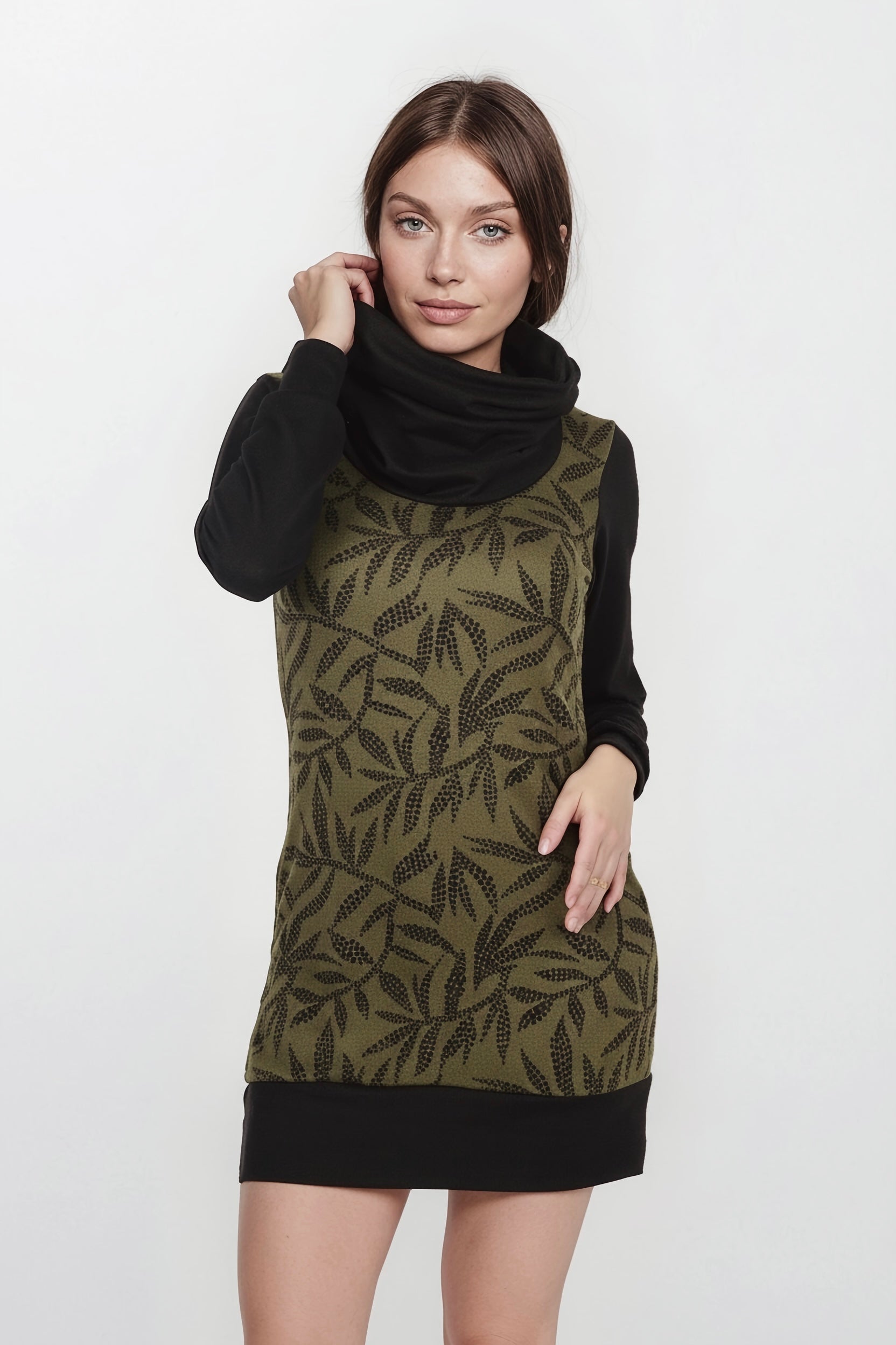 Laissez-vous charmer par la Robe Sophianne, une tunique élégante et facile à porter qui s'adaptera à toutes vos occasions. Son motif de feuillage pointillé dans des teintes de vert olive et de noir apporte une touche de sophistication discrète à votre quotidien, vous offrant un style à la fois chic et confortable.