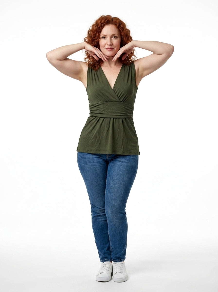 - Décolleté en V croisé façon portefeuille