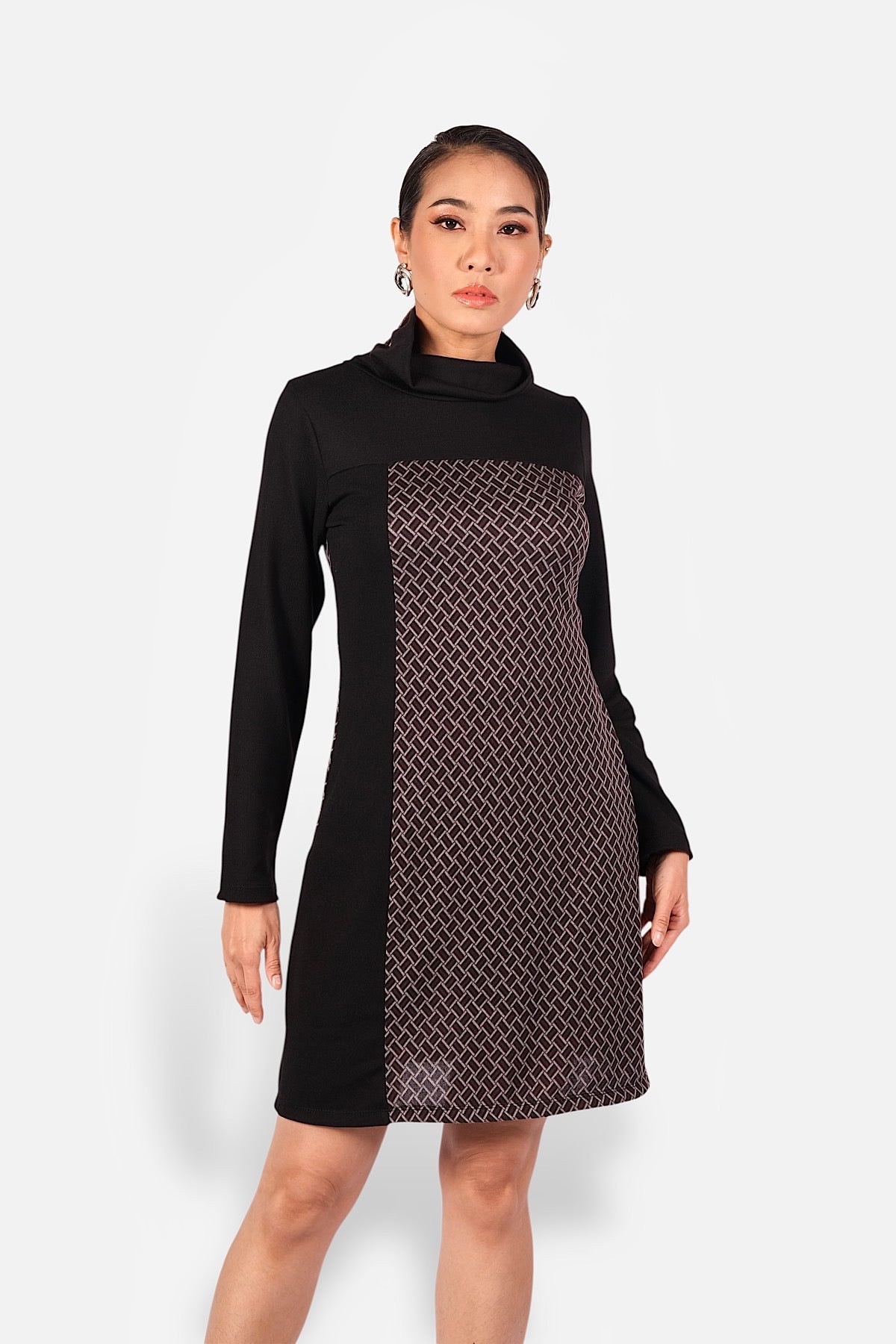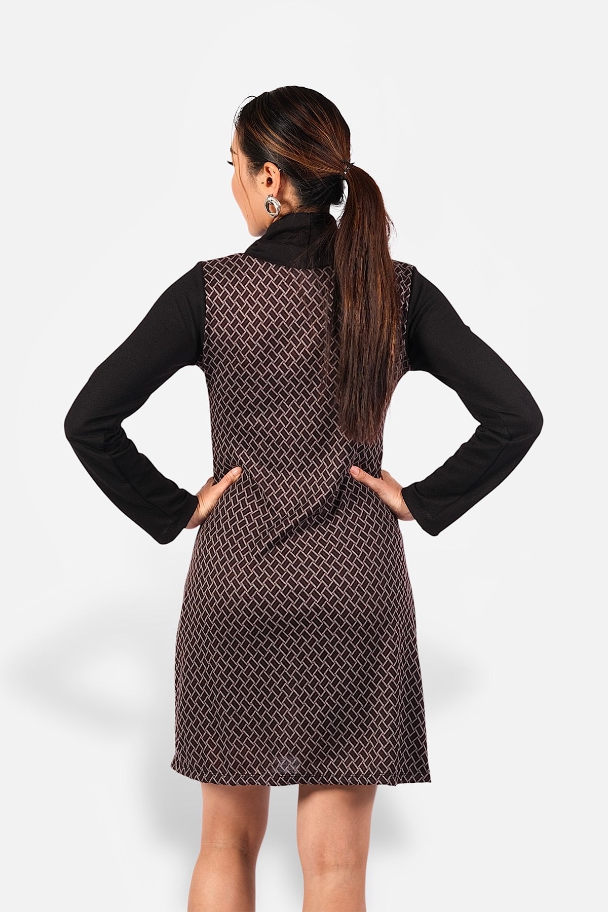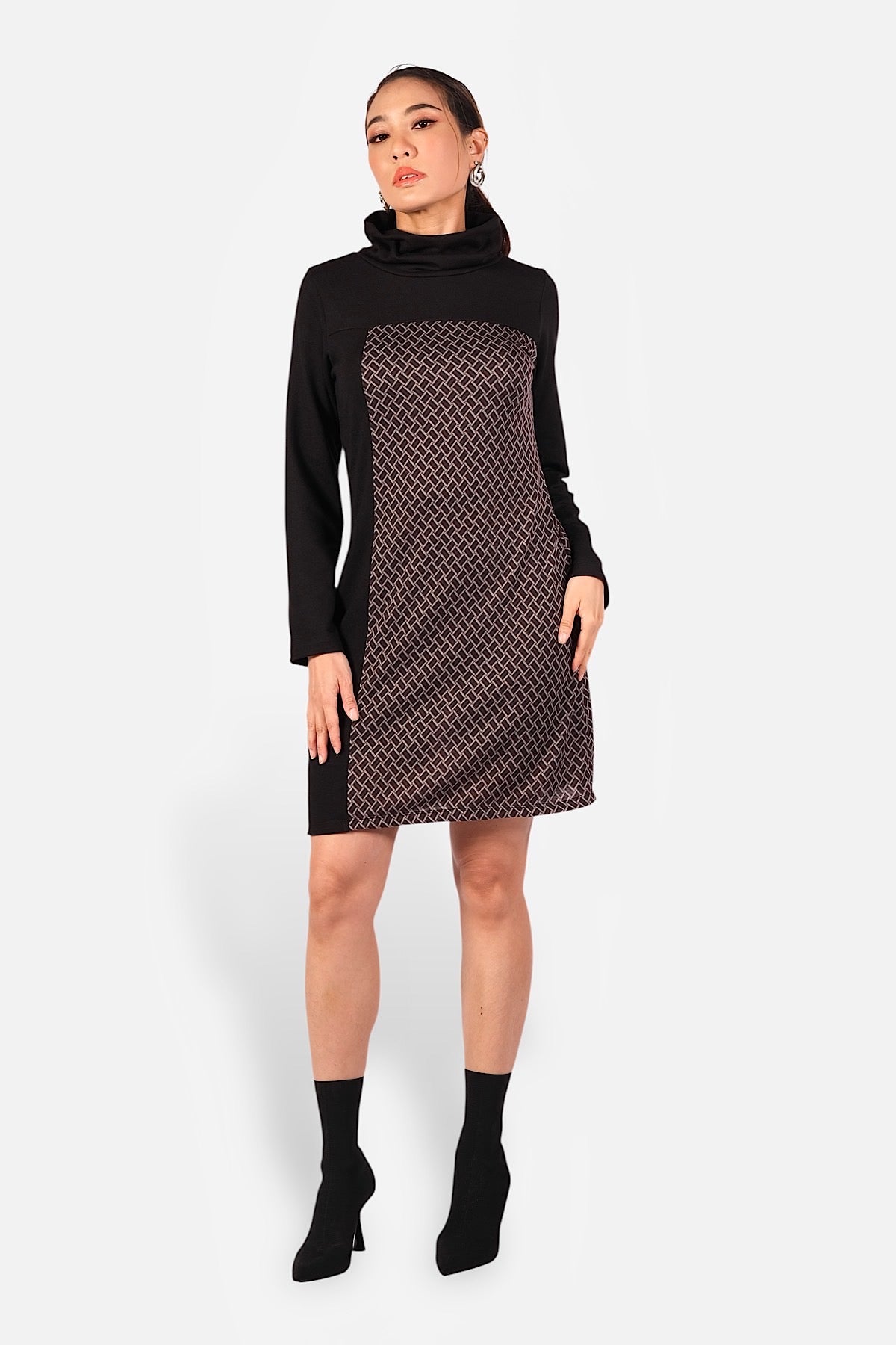 La Robe Adèle offre une coupe droite élégante à manches longues, soulignée par un imprimé géométrique qui affine la silhouette. Chic et confortable, idéale pour l’automne et l’hiver.