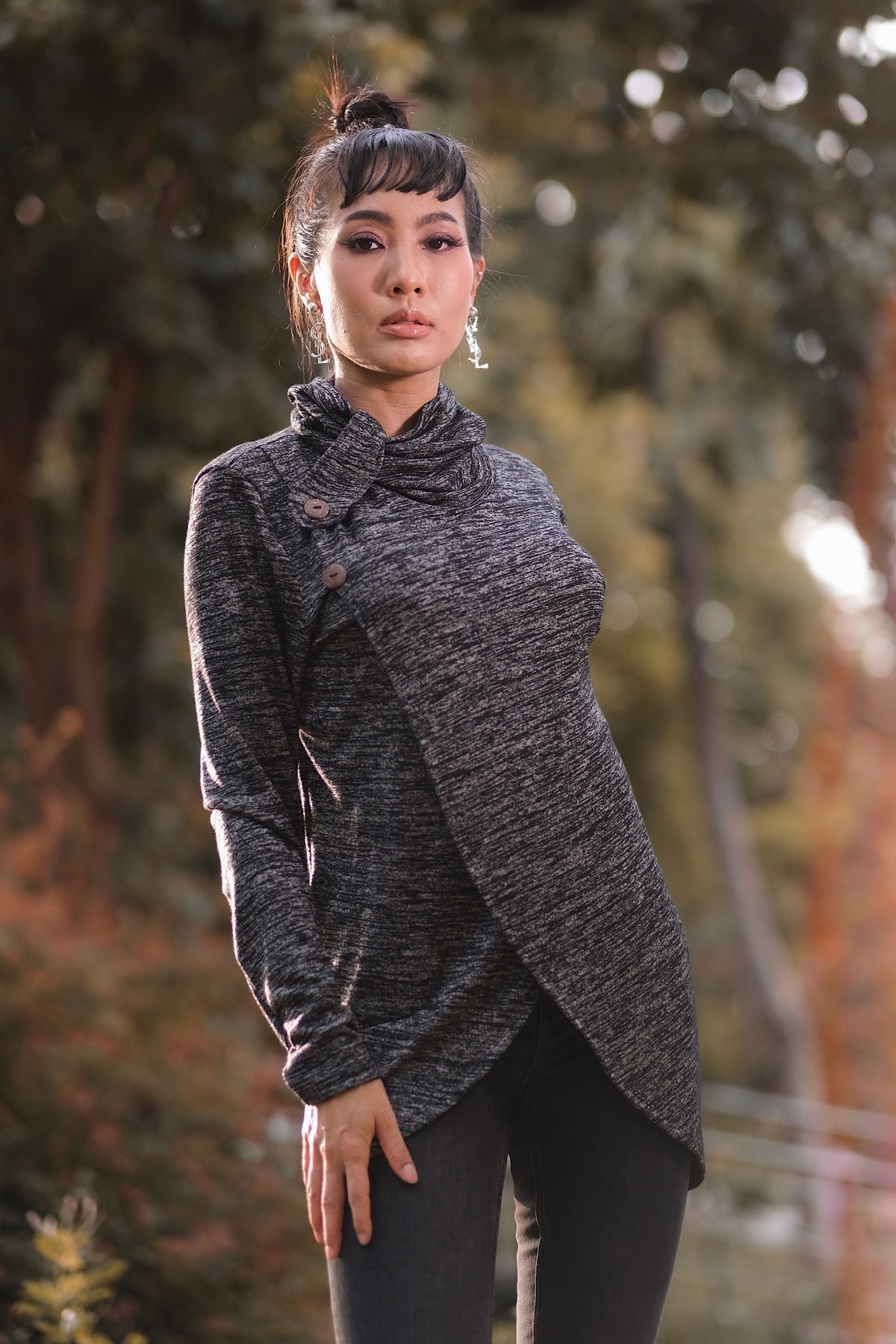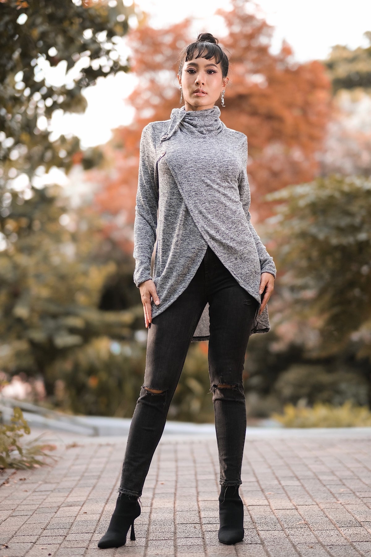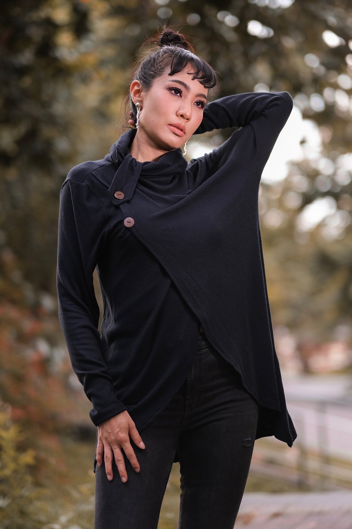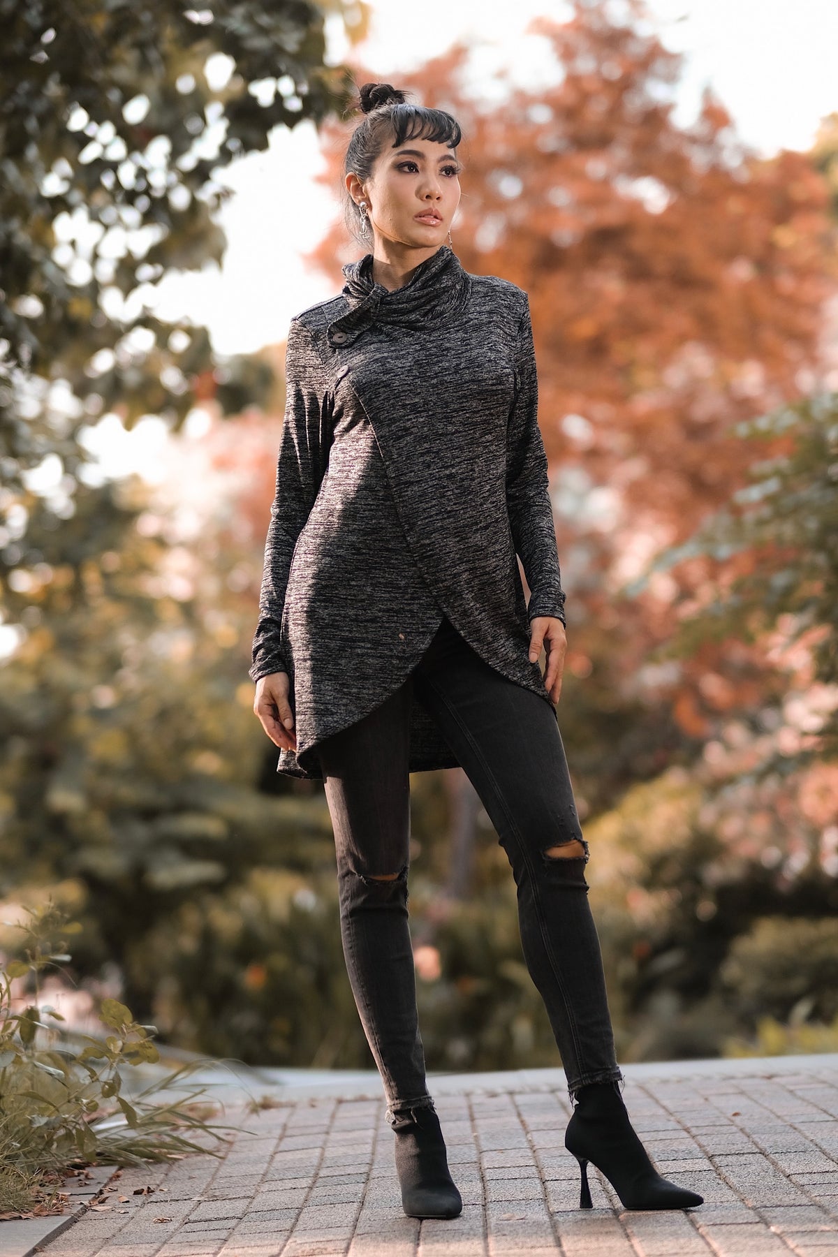 Notre modèle en photo mesure 5'7" et porte une taille small. Veuillez noter que les couleurs et/ou la position des motifs peuvent varier légèrement par rapport aux photos.